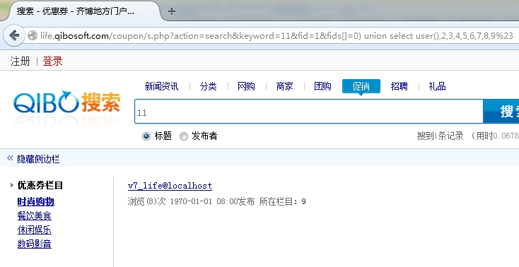 问题出在齐博搜索的位置,也就是:http://**.**.**.**/coupon/s.php