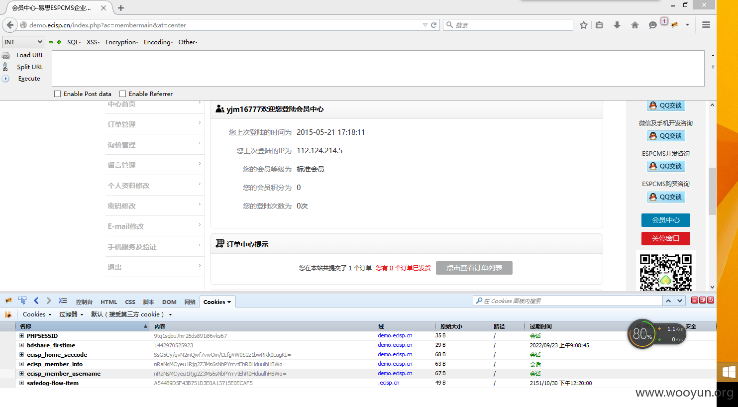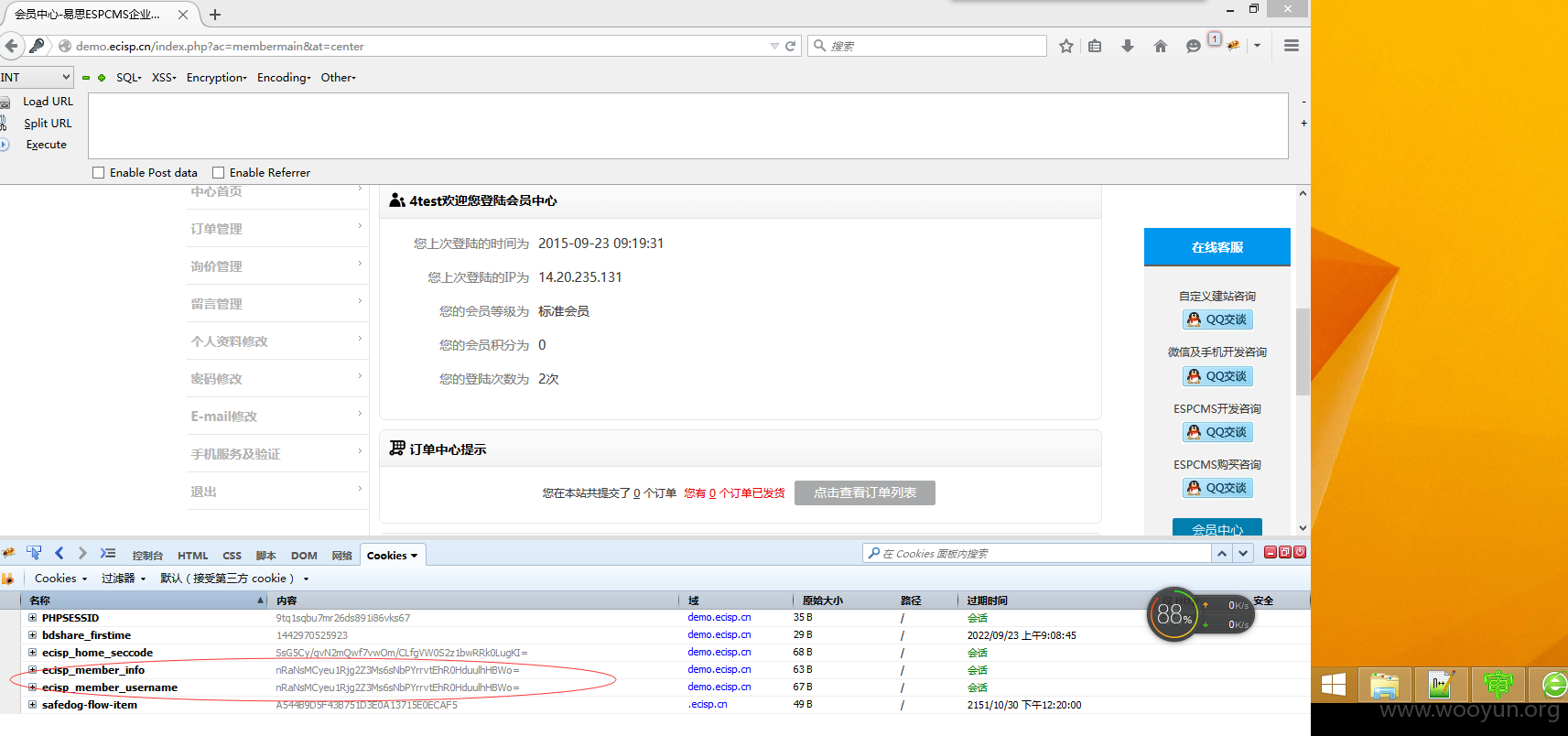 espcms验证用户信息的都是采用cookie验证uid的,只要可以伪造就可以任意登录
