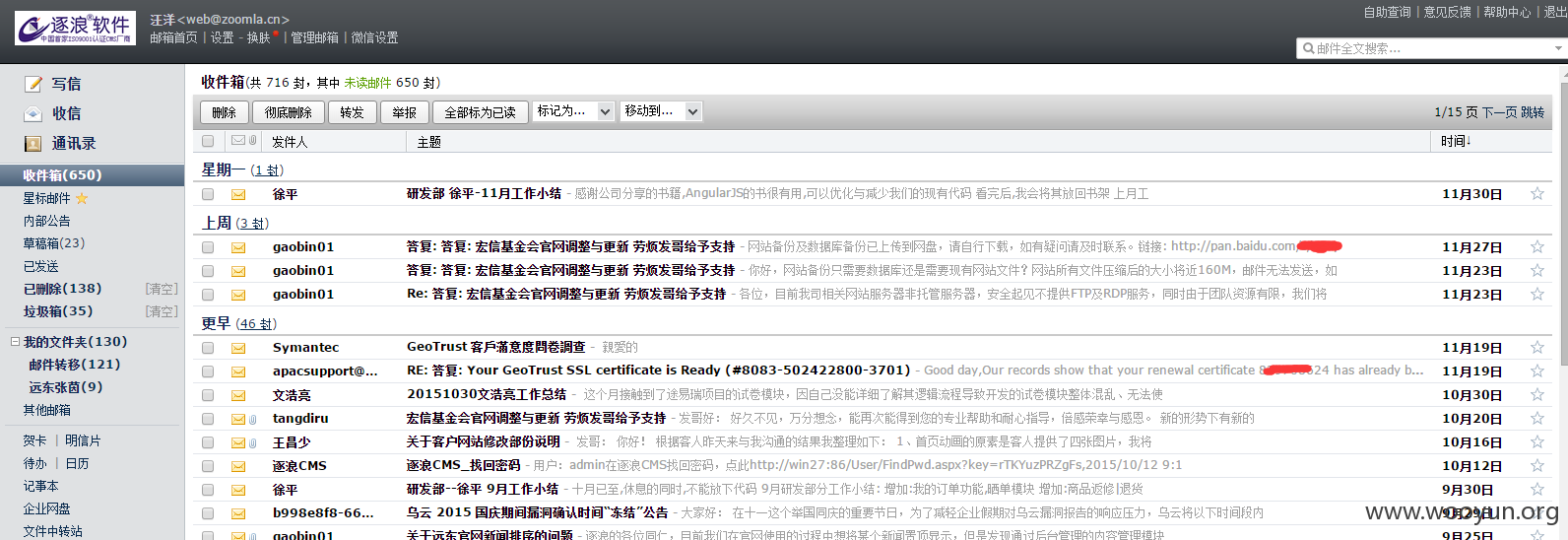 该密码可登录mail.hx008.com ,mail.zoomla.cn的官方账户:web,分别是逐浪和华夏互联的官方邮箱: