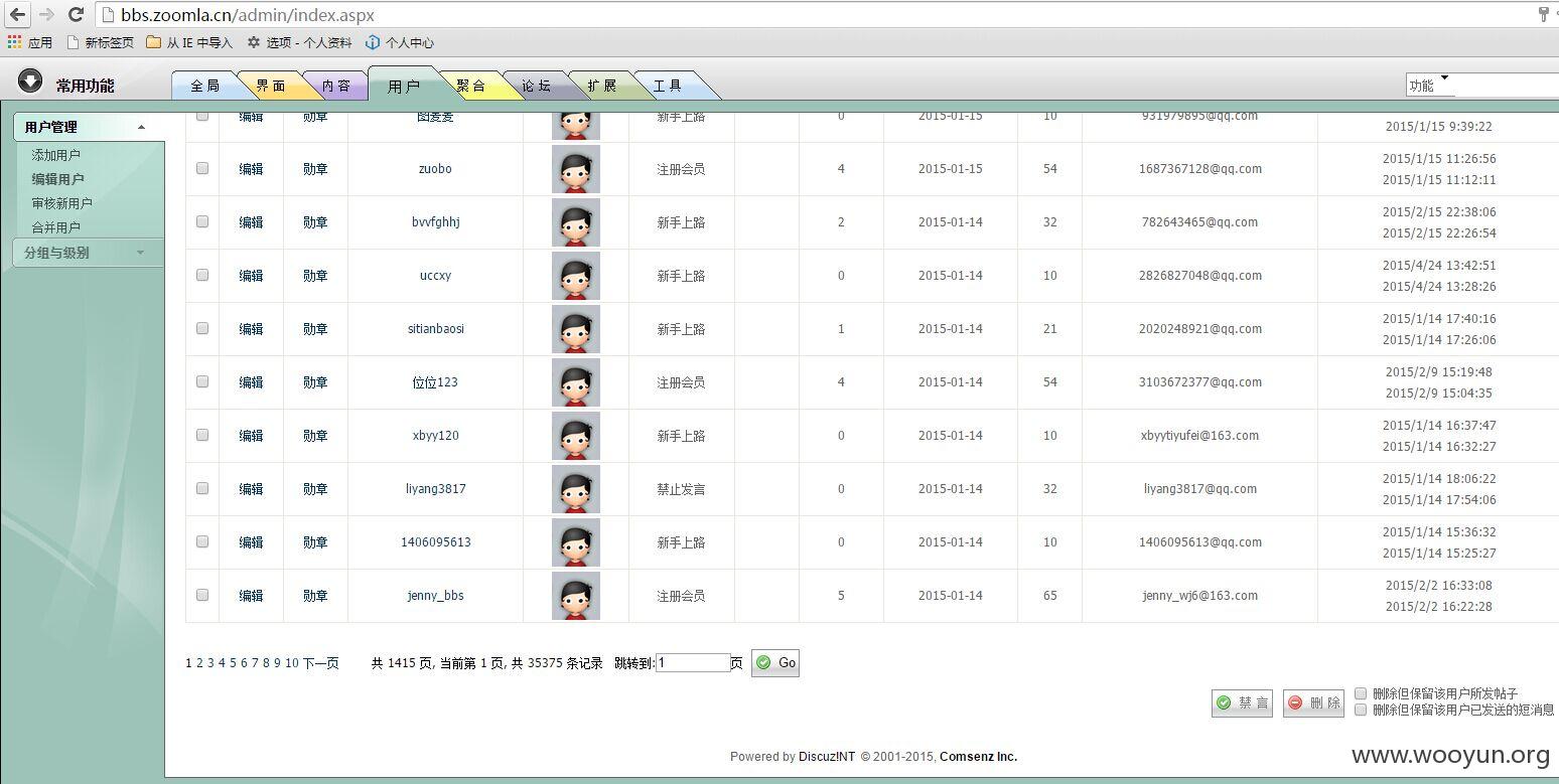 经过查看,bbs.zoomla.cn论坛已转移到http://club.zoomla.cn/,但账户密码应该没有换把?查看bbs的账户有3W多条: