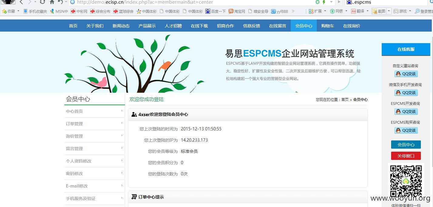 漏洞标题: espcms最新版V6.6.15.12.09任意用户登录(绕过补丁)