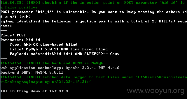 很明显,用户提交的参数hid_id没有任何的过滤便进入了sql查询,于是造成了sql注入漏洞